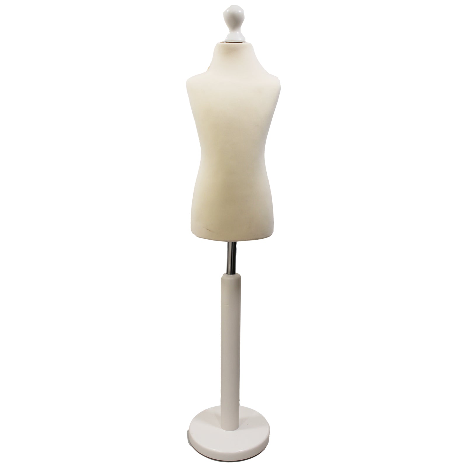 Children Kids Age 6-8 Tailors Dummy Mannequin. This Cream torso bust paired with a white wood Round base stand makes a perfect addition to any craft room, Shop Display and fashion clothes dispaly. This versatile mannequin is an essential tool for: