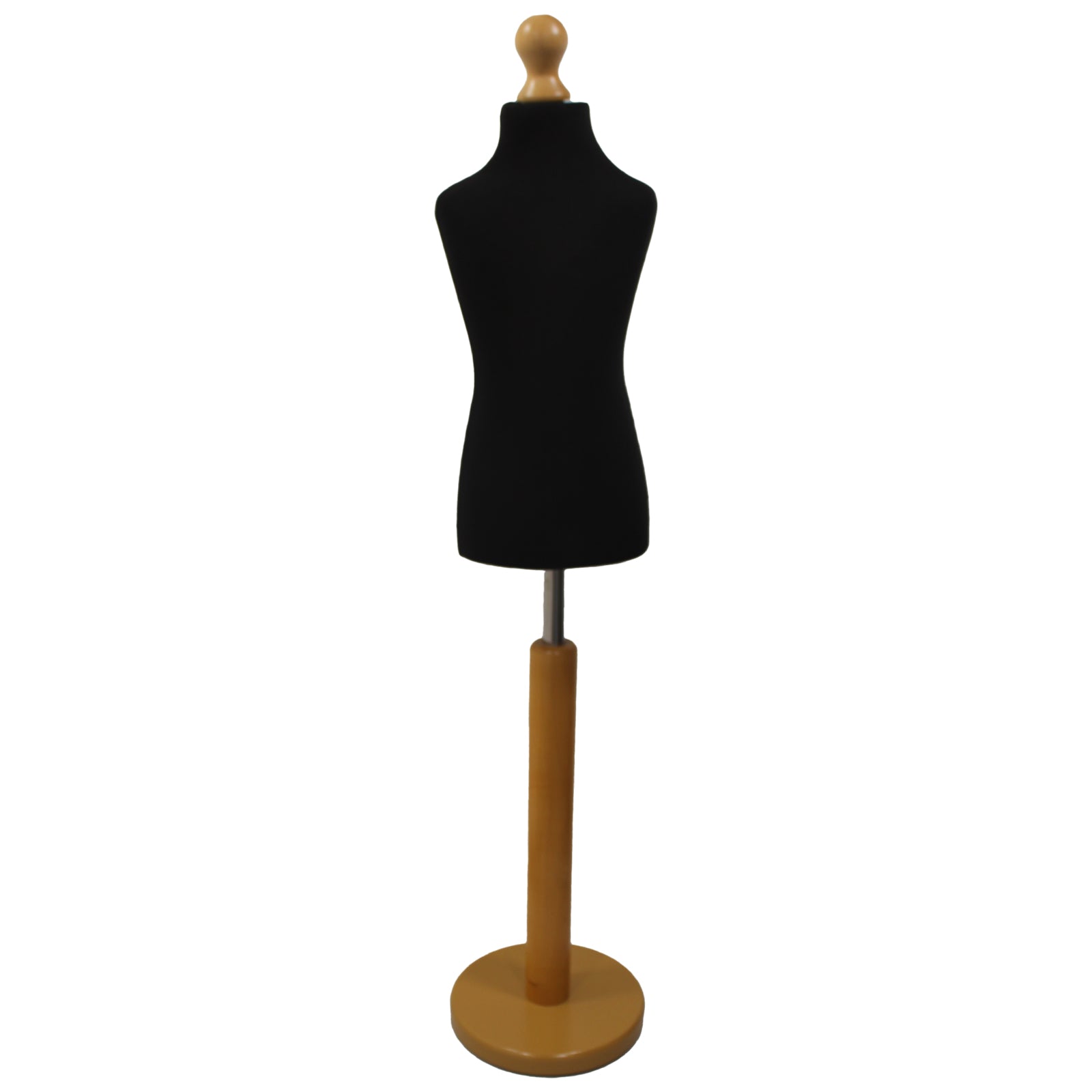 Children Kids Age 6-8 Tailors Dummy Mannequin. This Black torso bust paired with a Light wood Round base stand makes a perfect addition to any craft room, Shop Display and fashion clothes dispaly. This versatile mannequin is an essential tool for: