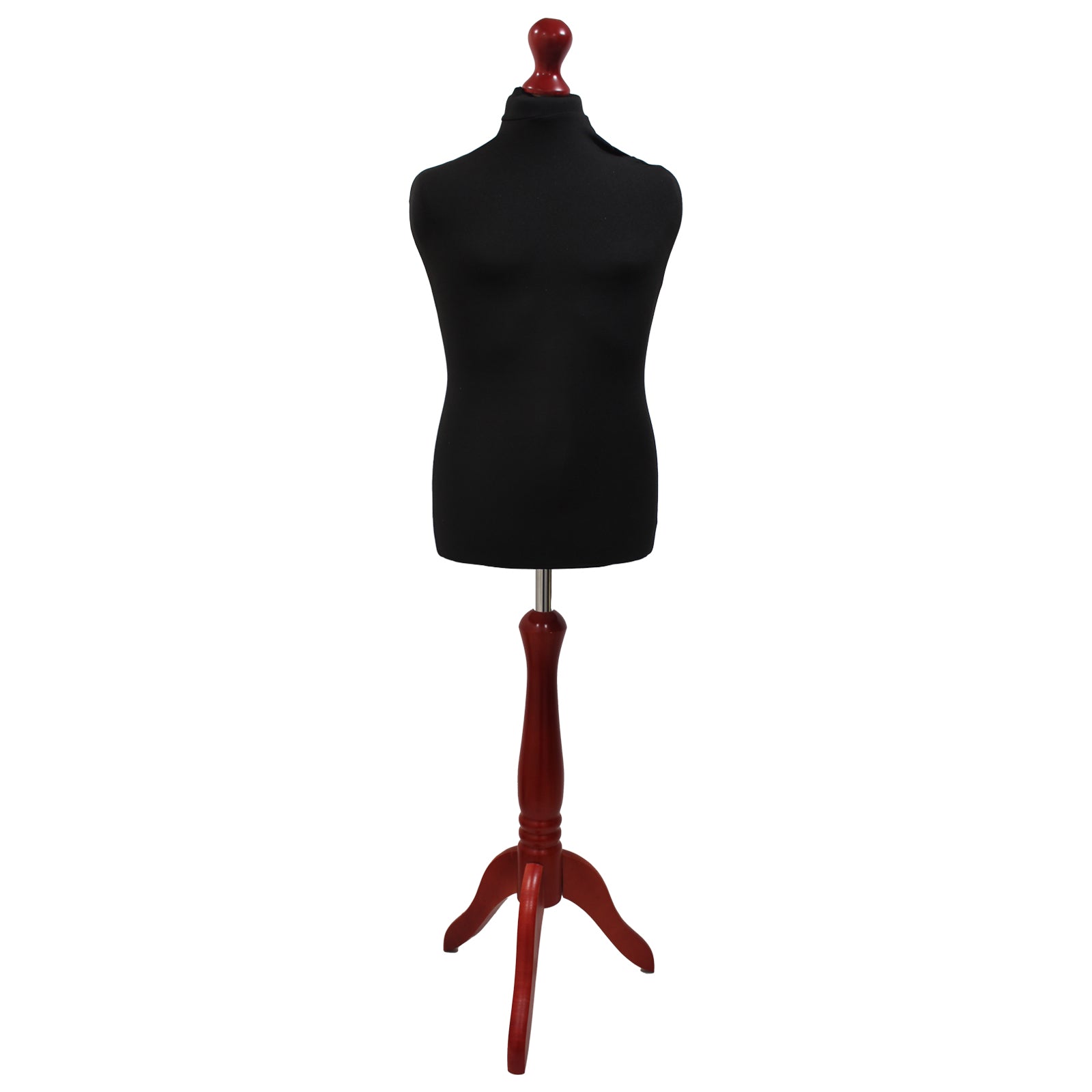 Male Children's Age 10-12 years Tailors Dummy Mannequin. This Black torso bust paired with a Red wood Tripod Stand makes a perfect addition to any craft room, Shop Display and fashion clothes dispaly. This versatile mannequin is an essential tool for: