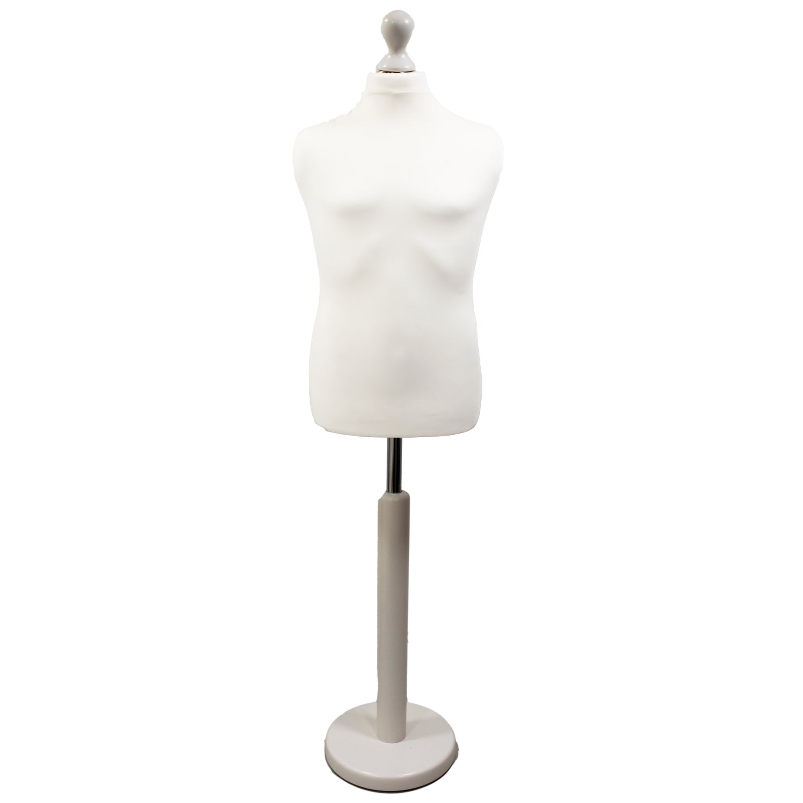 Male Children's Age 10-12 YEARS Tailors Dummy Mannequin. This White torso bust paired with a White wood Round Base makes a perfect addition to any craft room, Shop Display and fashion clothes dispaly. This versatile mannequin is an essential tool for: