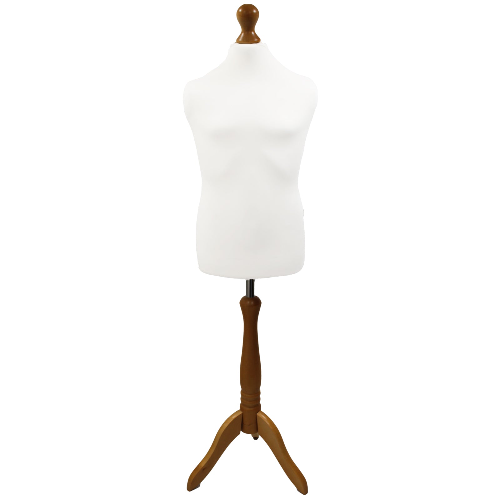 Male Children's Age 10-12 years Tailors Dummy Mannequin. This White torso bust paired with a Light wood Tripod Stand makes a perfect addition to any craft room, Shop Display and fashion clothes dispaly. This versatile mannequin is an essential tool for:
